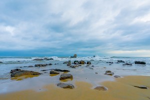 ◎ 接着游览【日月湾沙滩】,日月湾依山傍水,北面有山岭环抱,南濒南海经,是个半月形的海湾,海湾沙滩洁白松软细柔,海面风平浪静,海水湛蓝清澈。海中巨石激浪,颇为壮观。茹新河和田头河静静流淌,河流在日月湾内出海,河海水相渗,咸淡互补,水质清净,咸度适中,四季如春,风景秀丽,令人流连忘返。