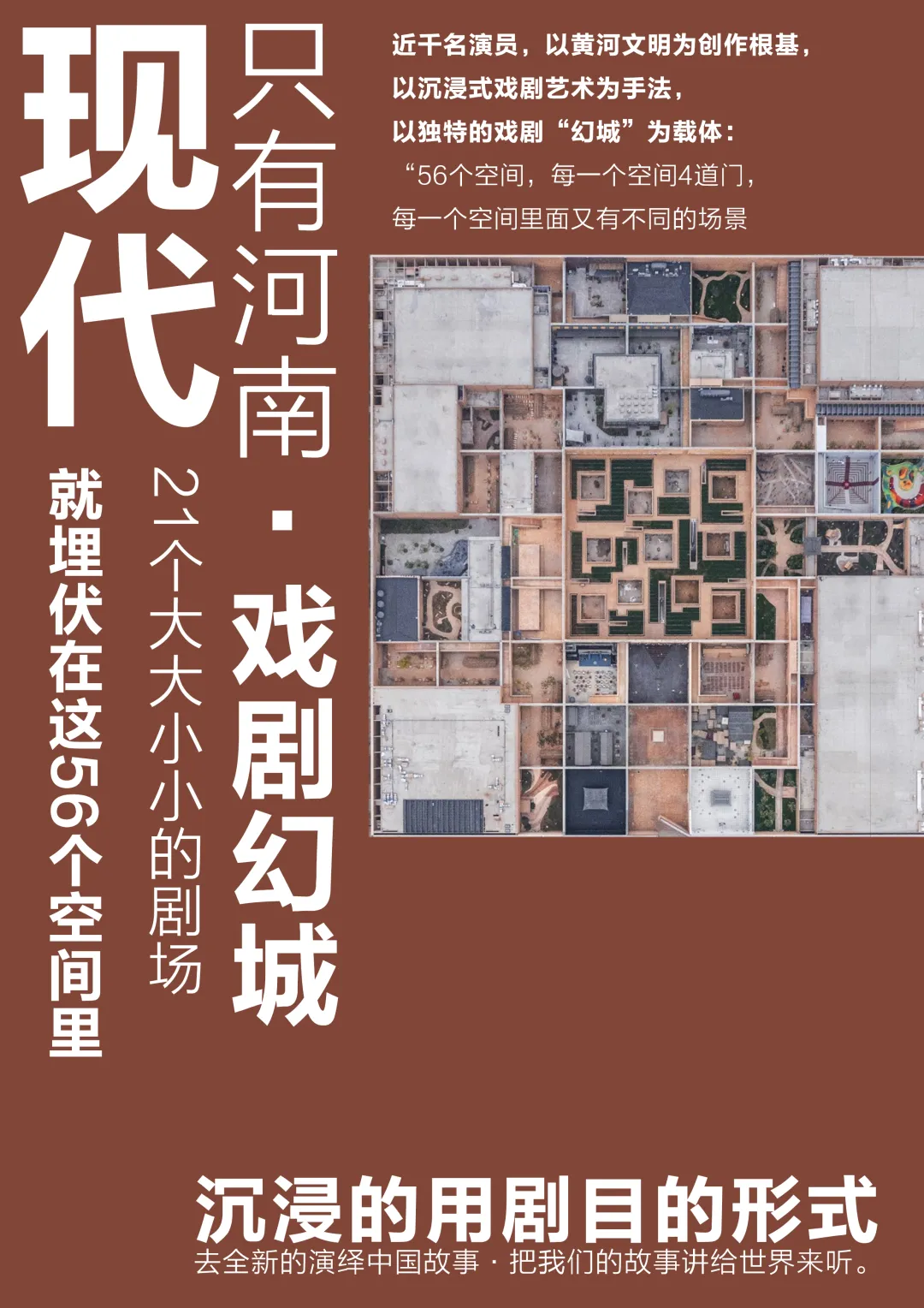 拥有21个大小不一的剧场、近千名演员,以黄河文明为创作根基,以沉浸式戏剧艺术为手法。