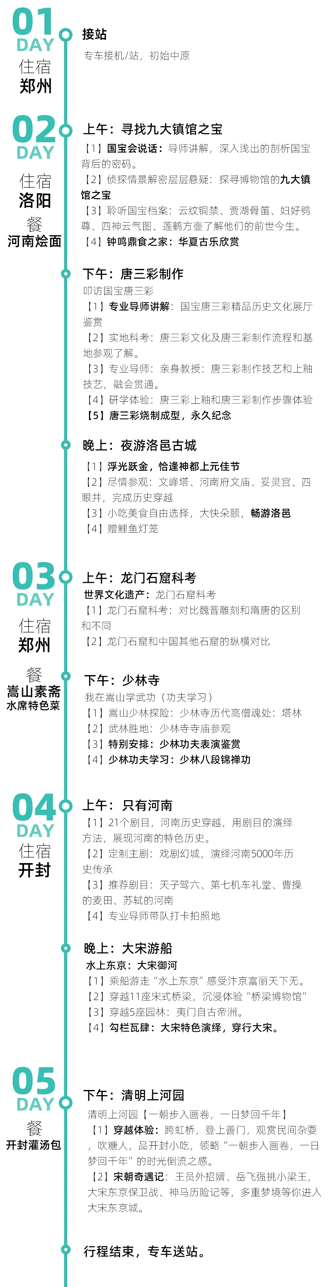 住宿:高档型(网评4钻)酒店标准2人间。参考酒店:郑州艾沐酒店/圣佳丽绅酒店或同级;洛阳曼景酒店/洛阳仟那酒店(国花路地铁站店)或同级;开封汀啡酒店/仟那千寻(鼓楼广场大相国寺店)或同级。
